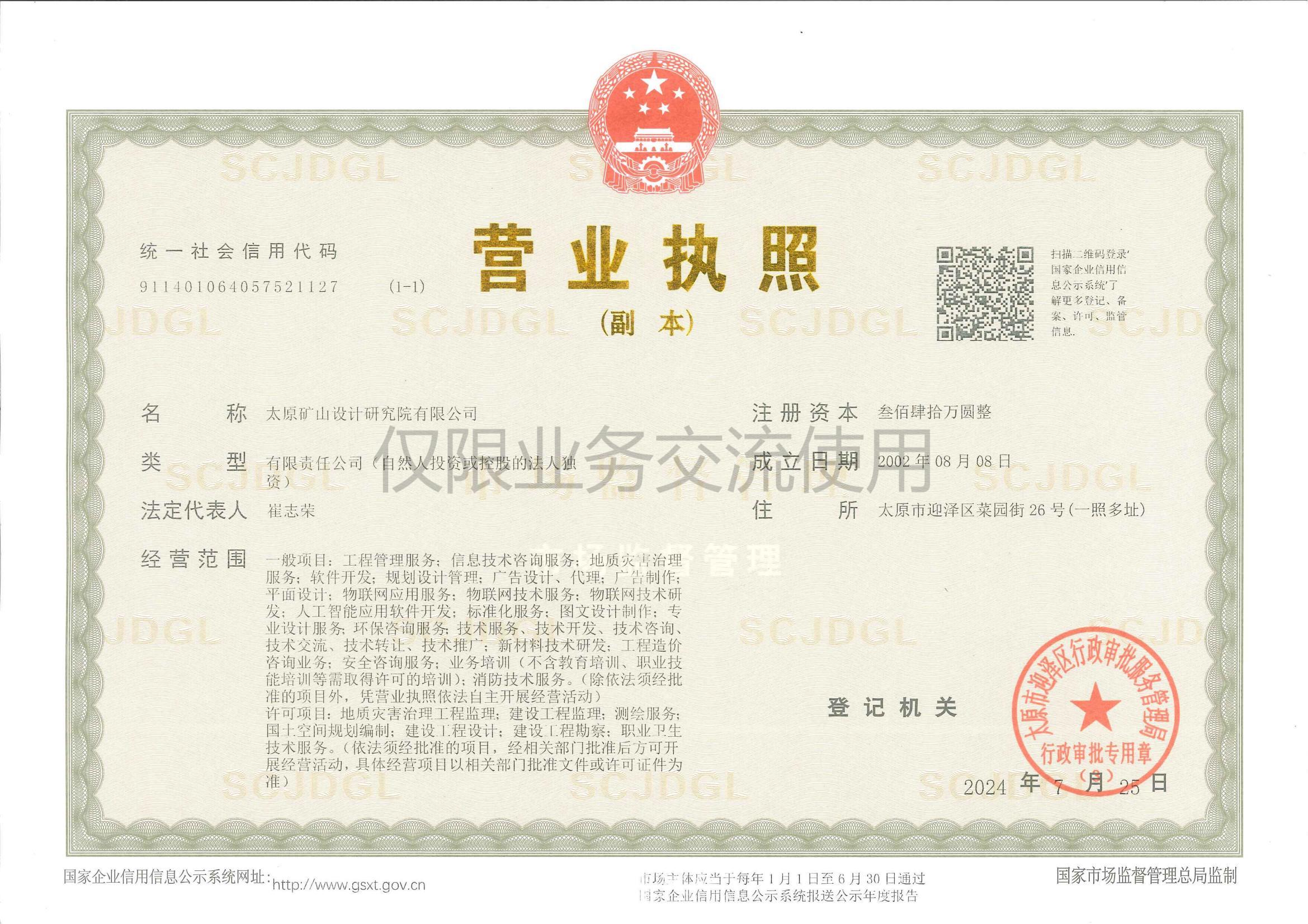 公司主要從事礦山采選尾工程設(shè)計、智能化及自動化礦山、建設(shè)綠色礦山、工程技術(shù)咨詢、規(guī)劃設(shè)計管理、施工勞務(wù)分包、土地規(guī)劃、地質(zhì)災(zāi)害治理服務(wù)、安全生產(chǎn)技術(shù)服務(wù)、軟件開發(fā)及測繪服務(wù);煤礦、非煤礦山設(shè)計;煤礦、非煤礦山、危險化學品安全評價(業(yè)務(wù)范圍:煤炭開采業(yè);金屬、非金屬及其他礦采選業(yè);石油加工業(yè),化學原料、化學品及醫(yī)藥制造業(yè));非煤礦山、冶金等工商貿(mào)企業(yè)、危險化學品從業(yè)單位安全生產(chǎn)標準化評審;公共場所衛(wèi)生、生活飲用水、公共場所集中中央空調(diào)通風系統(tǒng)的檢驗、檢測、評價;職業(yè)健康檢測檢驗;建設(shè)項目職業(yè)病危害評價、職業(yè)危害因素檢測與評價;安責險技術(shù)服務(wù);業(yè)務(wù)培訓等工作。